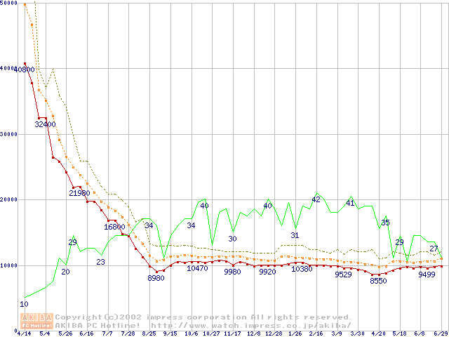 メモリ主要製品(最安値5千円~1万円未満)の最安値推移