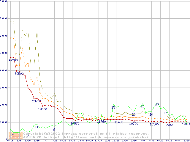PC800-45 DRDRAM RIMM ECC対応の最安値推移