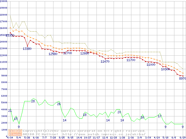 WD Caviar (7200rpm,UltraATA/100,20GB/Platter)の最安値推移