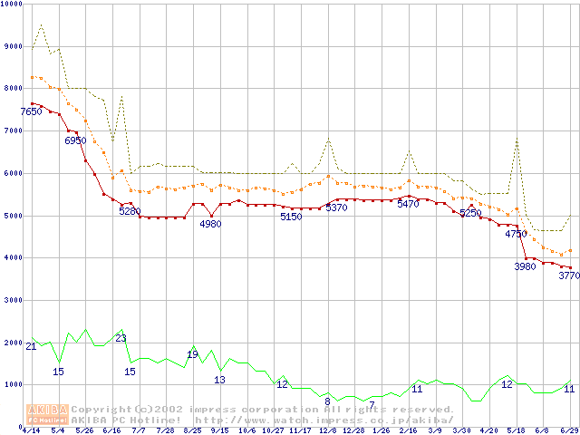 Socket A (Spitfire,PGA,FSB 200MHz,L2 64KB)の最安値推移