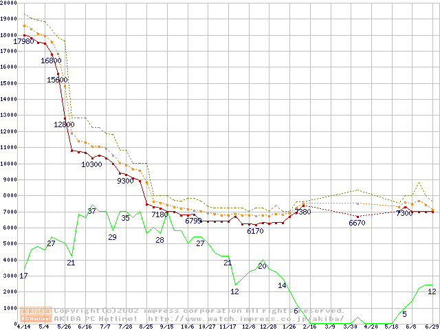 Celeron 850MHz FC-PGA リテールパッケージの価格推移