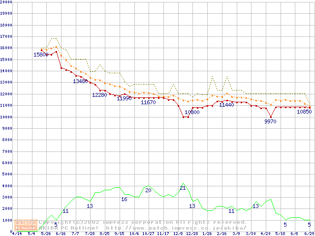 MPG3xxxAH-E (7200rpm,UltraATA/100)の最安値推移