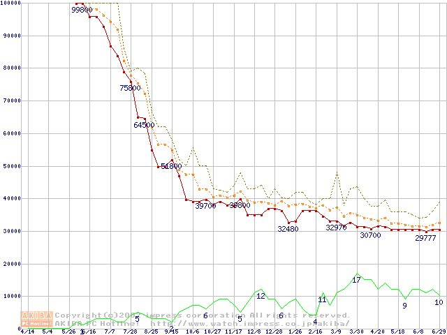 メモリ主要製品の最安値推移