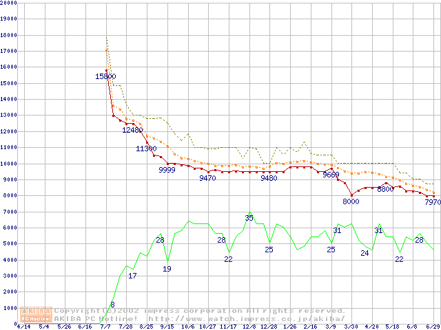 HDD主要製品の最安値推移