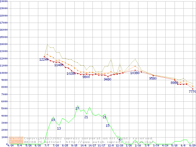 DiamondMax D540X (5400rpm,UltraATA/100,40GB/Platter)の最安値推移