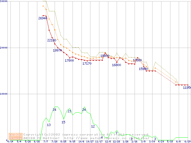 DiamondMax D540X (5400rpm,UltraATA/100,40GB/Platter)の最安値推移