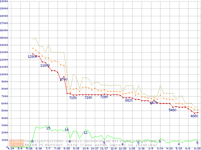 Socket A (Spitfire,PGA,FSB 200MHz,L2 64KB)の最安値推移