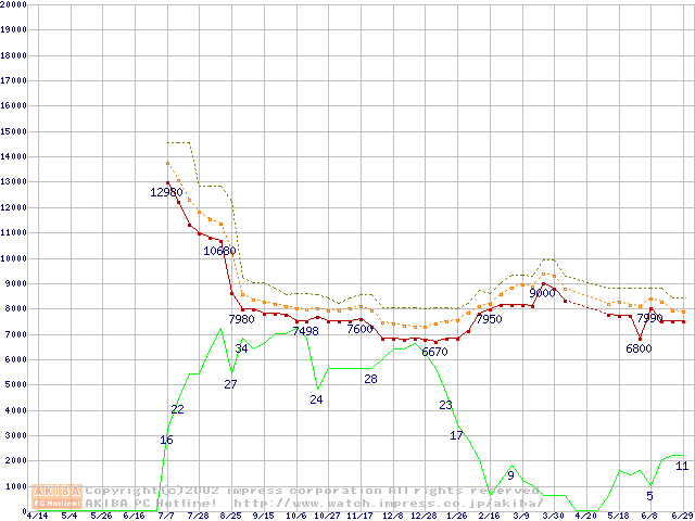 Celeron 900MHz FC-PGA リテールパッケージの価格推移
