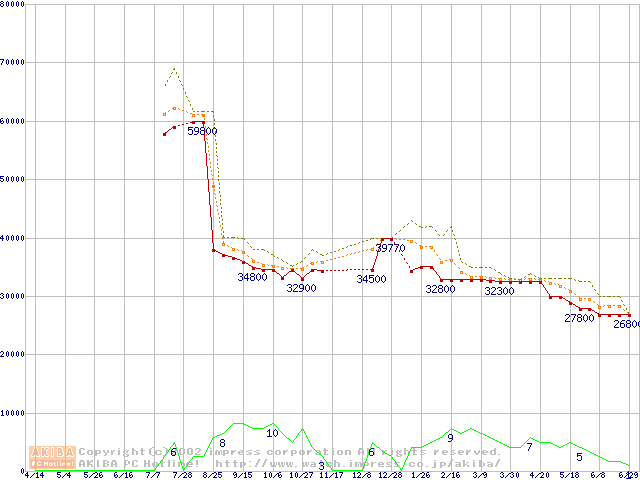Socket 603 (micro-PGA,L2 256KB,Foster)の最安値推移