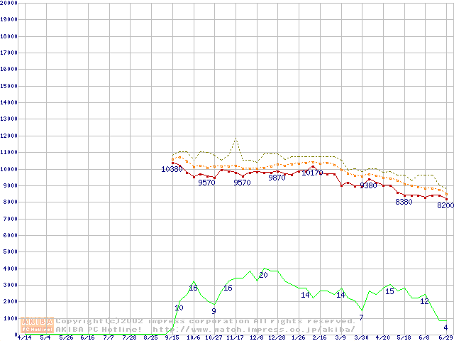DiamondMax D540X (5400rpm,UltraATA/100,40GB/Platter)の最安値推移