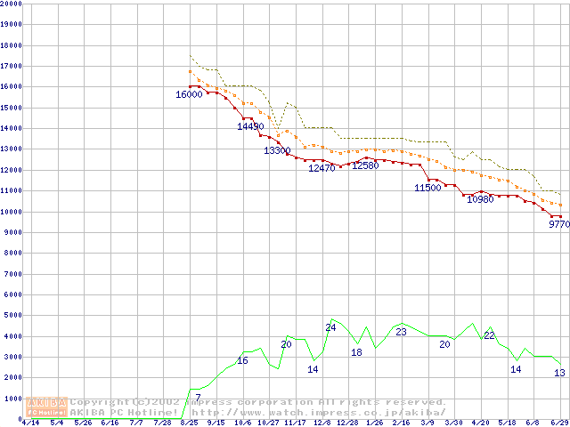 DiamondMax D540X (5400rpm,UltraATA/100,40GB/Platter)の最安値推移