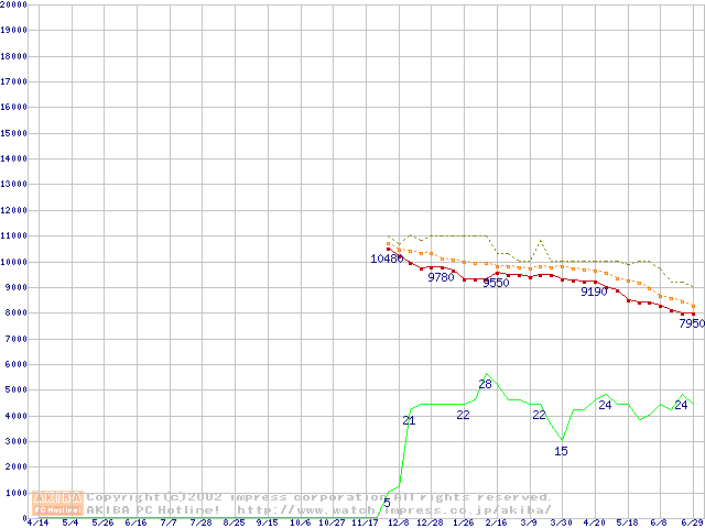 DiamondMax Plus D740X (7200rpm,UltraATA/133,40GB/Platter,流体軸受)の最安値推移