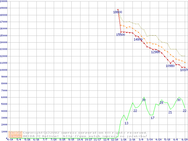 DiamondMax Plus D740X (7200rpm,UltraATA/133,40GB/Platter,流体軸受)の最安値推移
