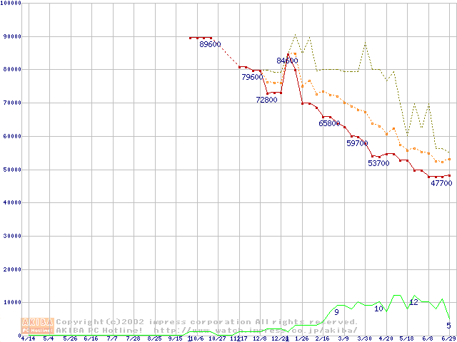 PC2100(DDR266) DDR SDRAM DIMM ECC対応 Registeredタイプの最安値推移