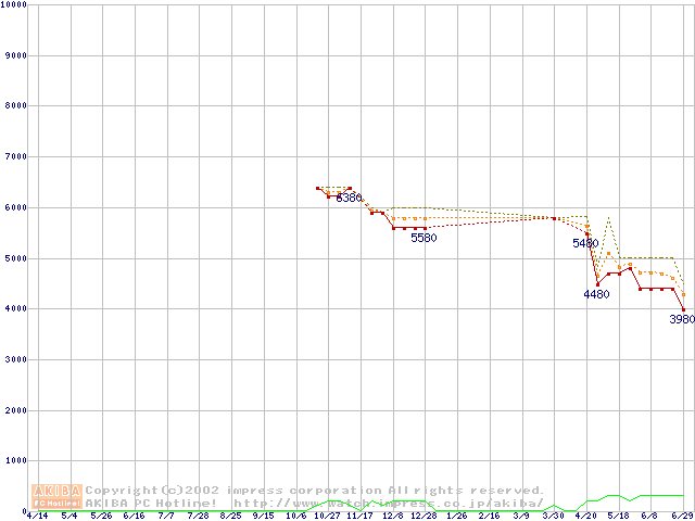 Socket 370 (PGA,FSB 133MHz,L2 64KB)の最安値推移