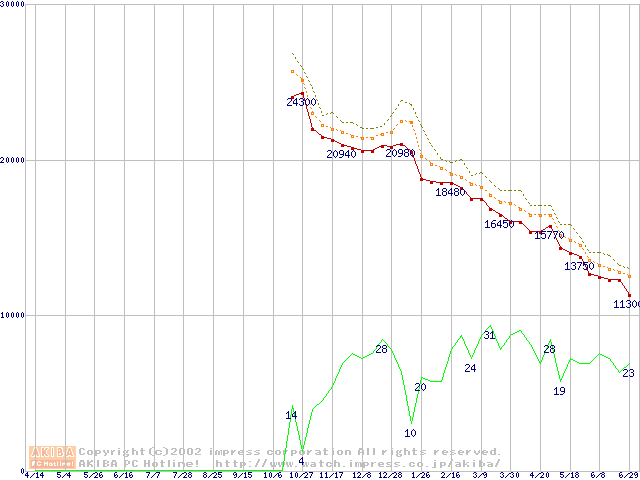 Athlon XP 1700+ (1.47GHz) リテールパッケージの価格推移