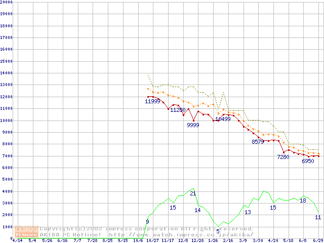 Socket A (Morgan,PGA,FSB 200MHz,L2 64KB)の最安値推移