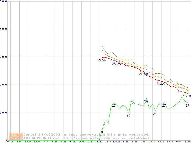 DiamondMax D540X (5400rpm,UltraATA/133,40GB/Platter)の最安値推移