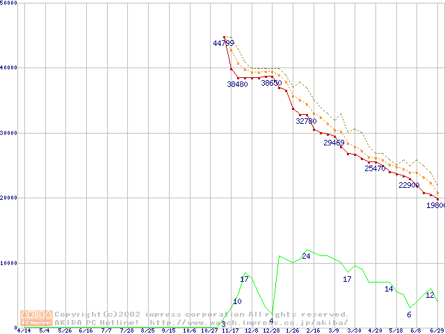 WD Caviar (7200rpm,UltraATA/100,2MB)の最安値推移