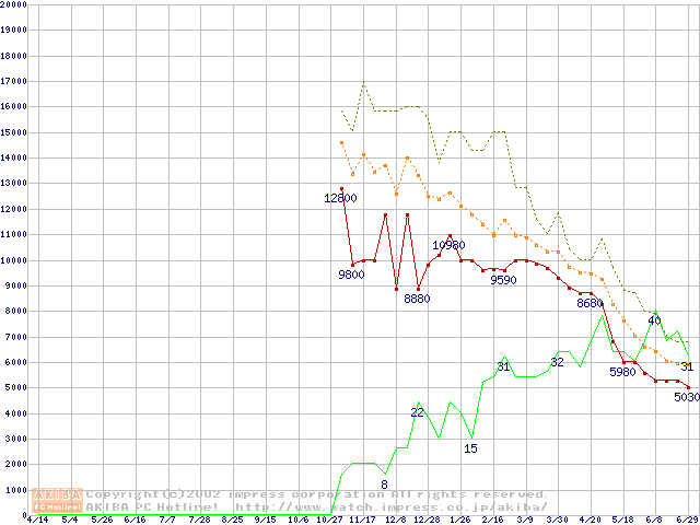 メモリ主要製品の最安値推移