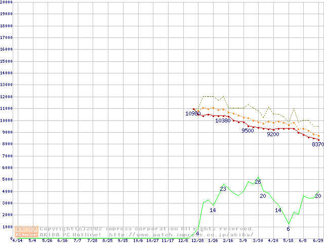 DiamondMax D540X (5400rpm,UltraATA/100,40GB/Platter,流体軸受)の最安値推移