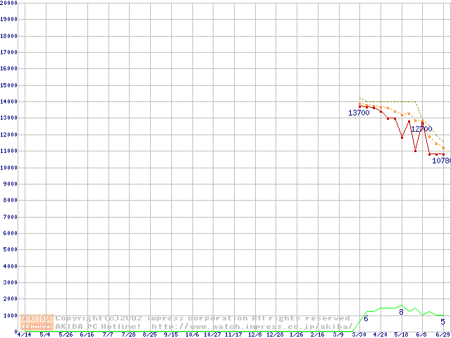 DiamondMax D540X (5400rpm,UltraATA/100,40GB/Platter,流体軸受)の最安値推移