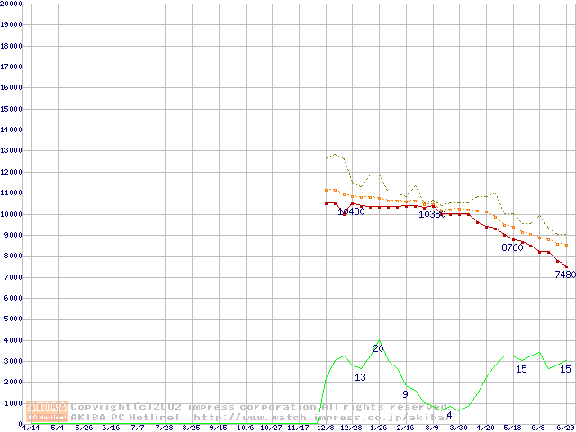 DiamondMax D540X (5400rpm,UltraATA/100,40GB/Platter,流体軸受)の最安値推移