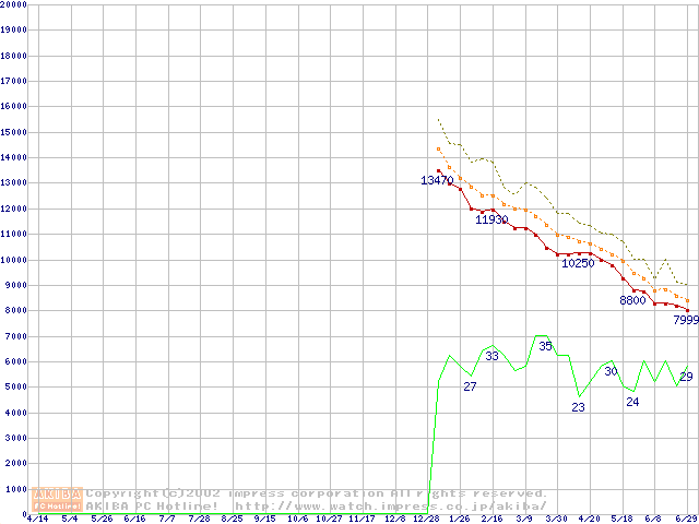 Deskstar 120GXP (7200rpm,UltraATA/100 2MB)の最安値推移