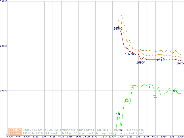 Pentium 4 1.60A GHz リテールパッケージの価格推移