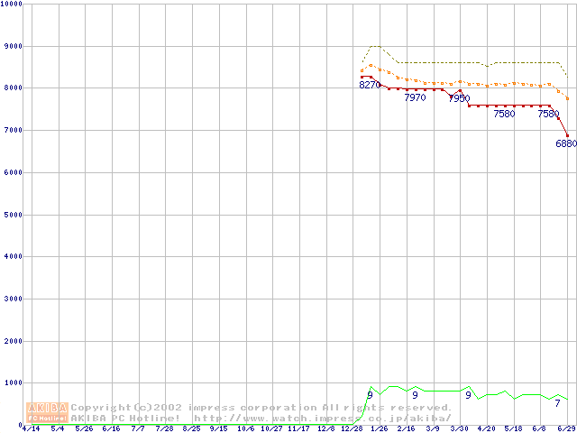 Socket 370 (PGA,FSB 100MHz,L2 64KB)の最安値推移