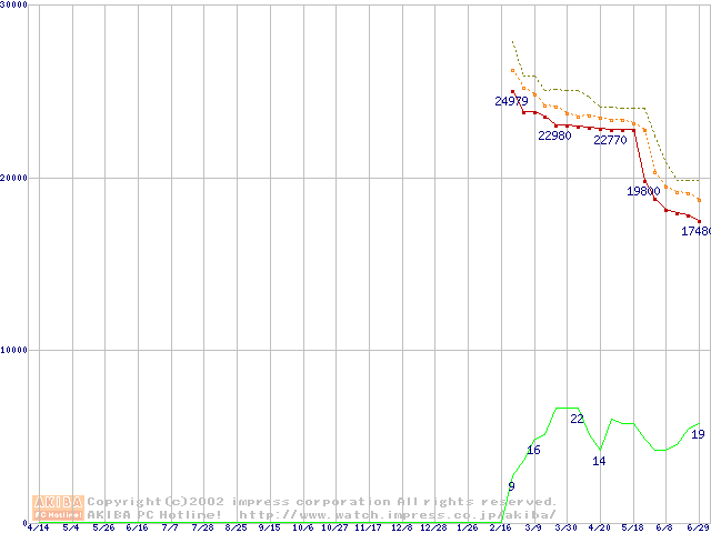 Athlon MP 1600+ (1.4GHz) リテールパッケージの価格推移