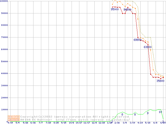 Socket 603 (micro-PGA,L2 512KB,Hyper-Threading,Prestonia)の最安値推移