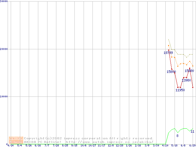 PC3000(DDR366) DDR SDRAM DIMMの最安値推移