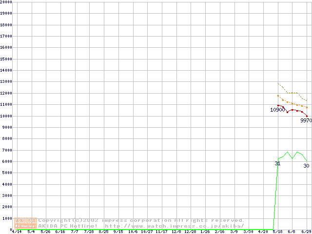Socket 478 (micro-PGA,FSB 400MHz,L2 128KB,Willamette)の最安値推移