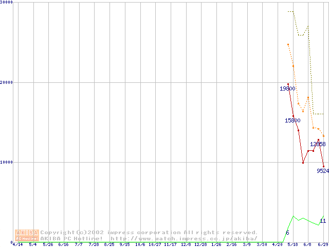 PC3200(DDR400) DDR SDRAM DIMMの最安値推移