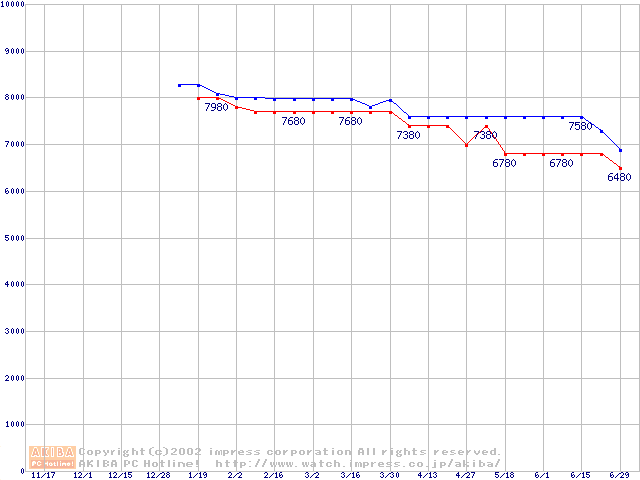 | [↓次グラフ]: | Deskstar 120GXP (7200rpm,UltraATA/100 2MB)の最安値推移 |