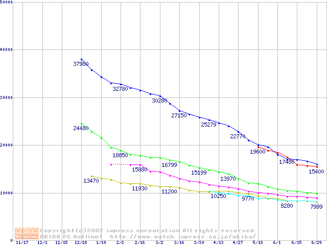 | Deskstar 120GXP (7200rpm,UltraATA/100 2MB)の最安値推移 |