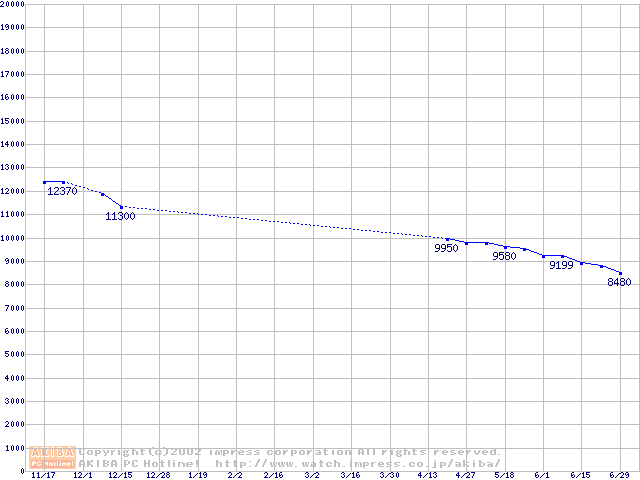 | [↓次グラフ]: | U6 (5400rpm,UltraATA/100 2MB 40GB/Platter,流体軸受)の最安値推移 |