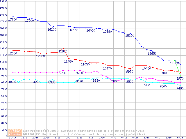 | [↓次グラフ]: | U5 (5400rpm,UltraATA/100 512KB)の最安値推移 |