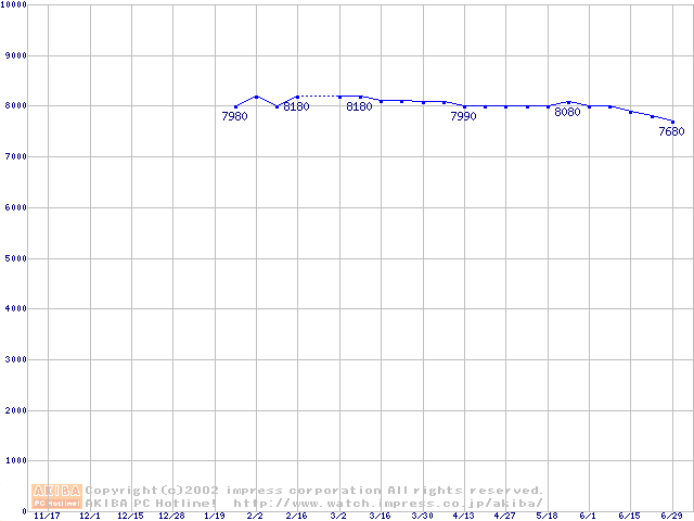| [↓次グラフ]: | WD Caviar(Special Edition) (7200rpm,UltraATA/100,8MB)の最安値推移 |