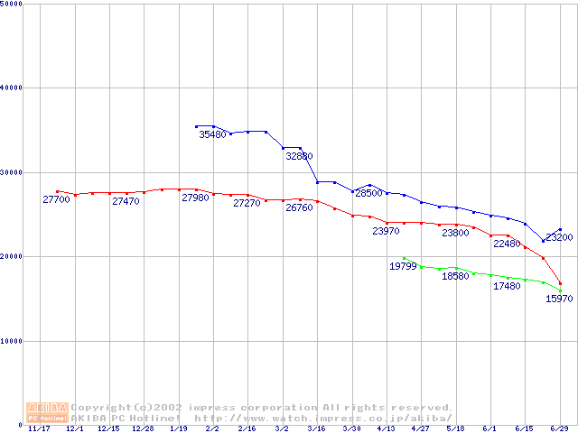 | [↑前グラフ]: | U5 (5400rpm,UltraATA/100 512KB)の最安値推移 |