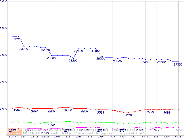 | [↓次グラフ]: | PC800-40 DRDRAM RIMMの最安値推移 |