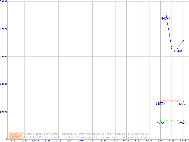 | [↑前グラフ]: | PC800-45 DRDRAM RIMM ECC対応の最安値推移 |
