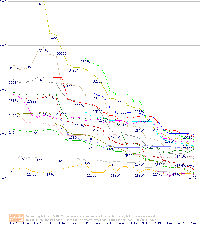 CPU主要製品(最安値2万円~3万円未満)の最安値推移