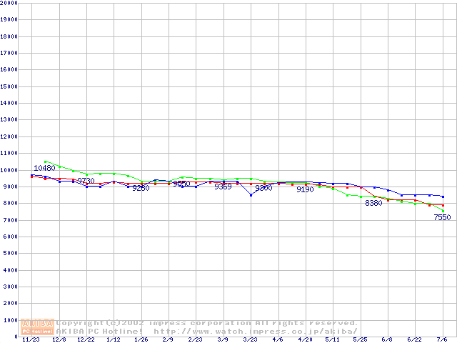 | [↑前グラフ]: | HDD 100GB以上(5400rpmクラス)の最安値推移 |