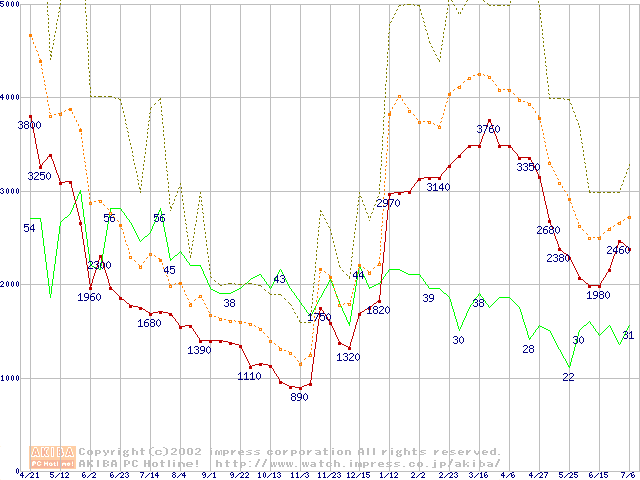 PC100 SDRAM DIMM CasLatency=2の最安値推移