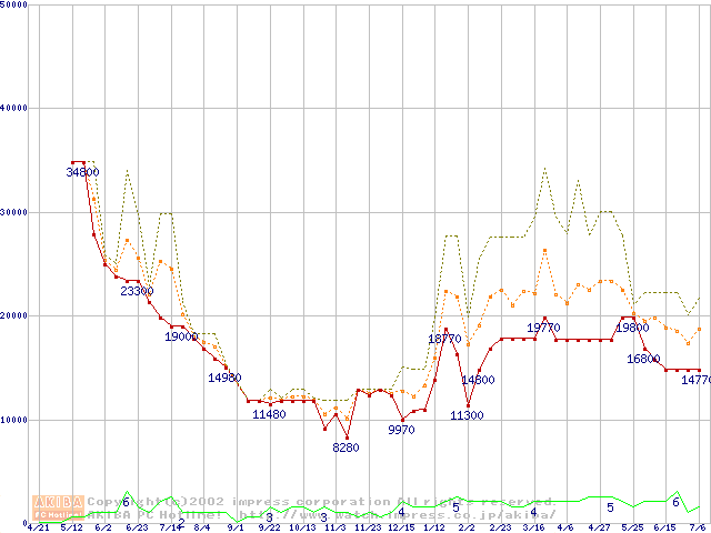 PC100 SDRAM DIMM CasLatency=2 ECC対応の最安値推移
