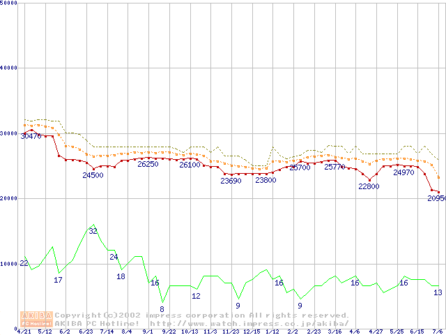 Pentium III 1GHz SECC2 リテールパッケージの価格推移
