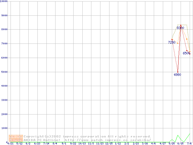 Socket 370 (FC-PGA,FSB 100MHz,L2 128KB)の最安値推移