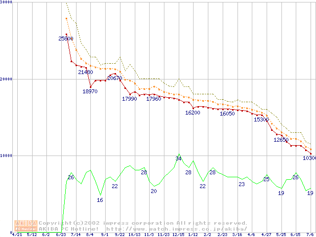 U6 (5400rpm,UltraATA/100 2MB 40GB/Platter)の最安値推移